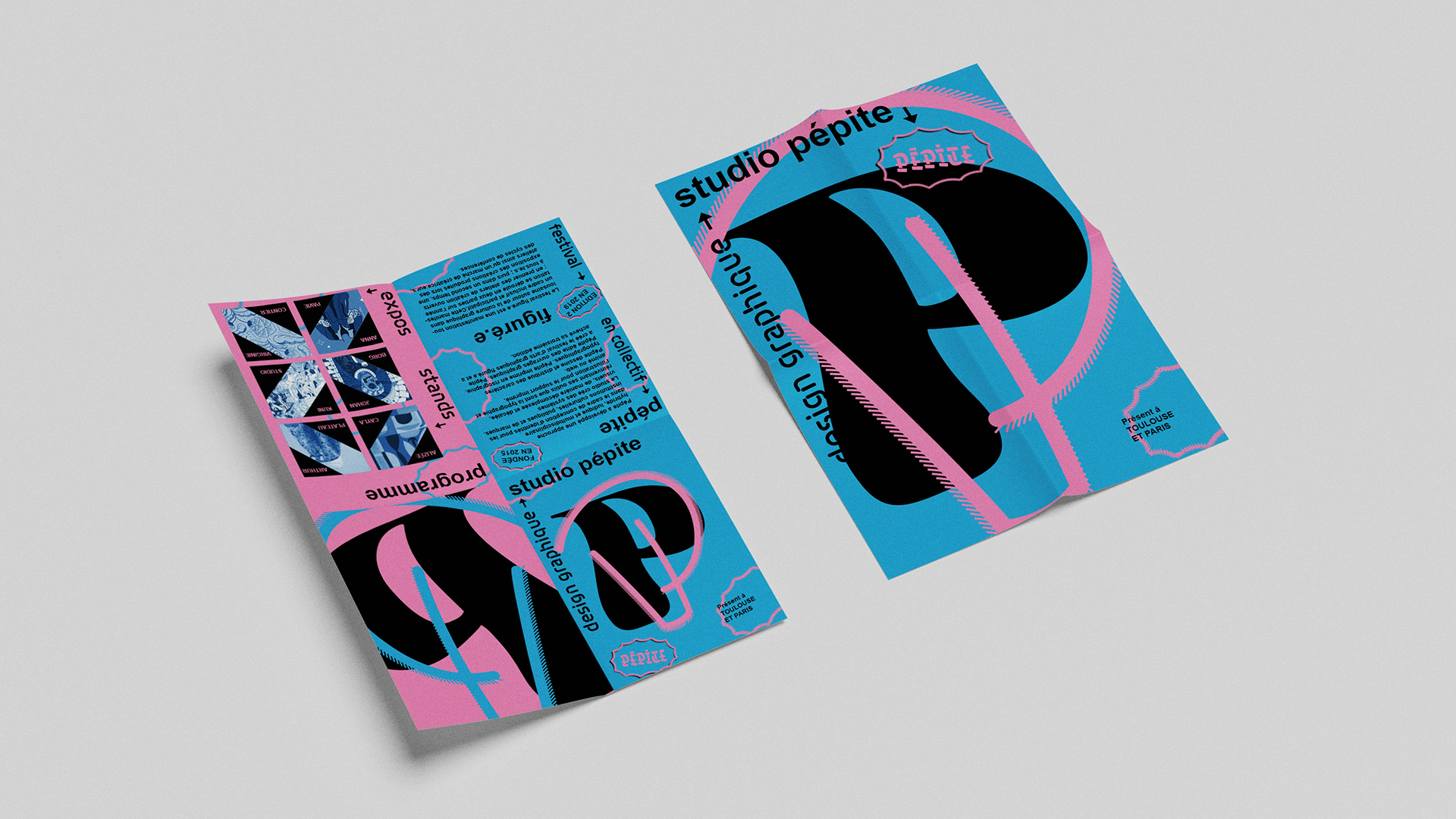 Flyer présentant le studio de design graphique « Pépite » et leur projet de festival : le Festival Figuré.e de 2019.